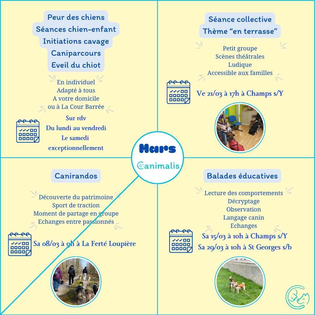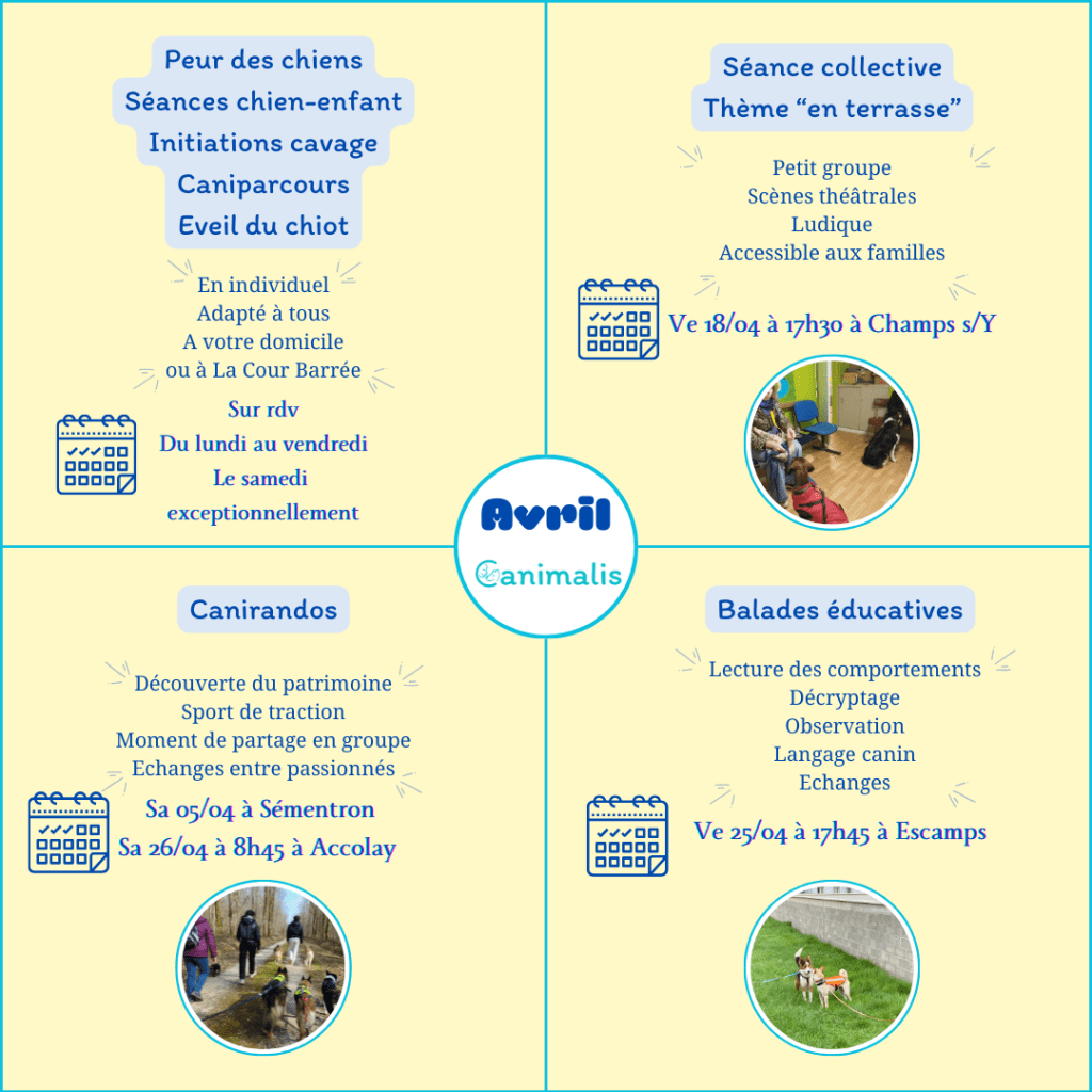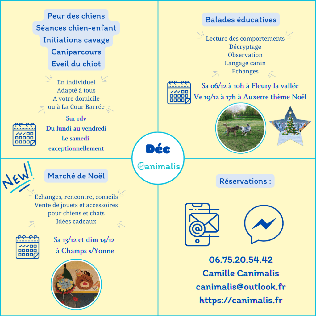 dans votre entourage, offrez-leur un bon cadeau chez Canimalis, ils pourront choisir entre les différentes activités proposées : éducation canine, loisirs canins : caniparcours, canivacances, cavage![]()