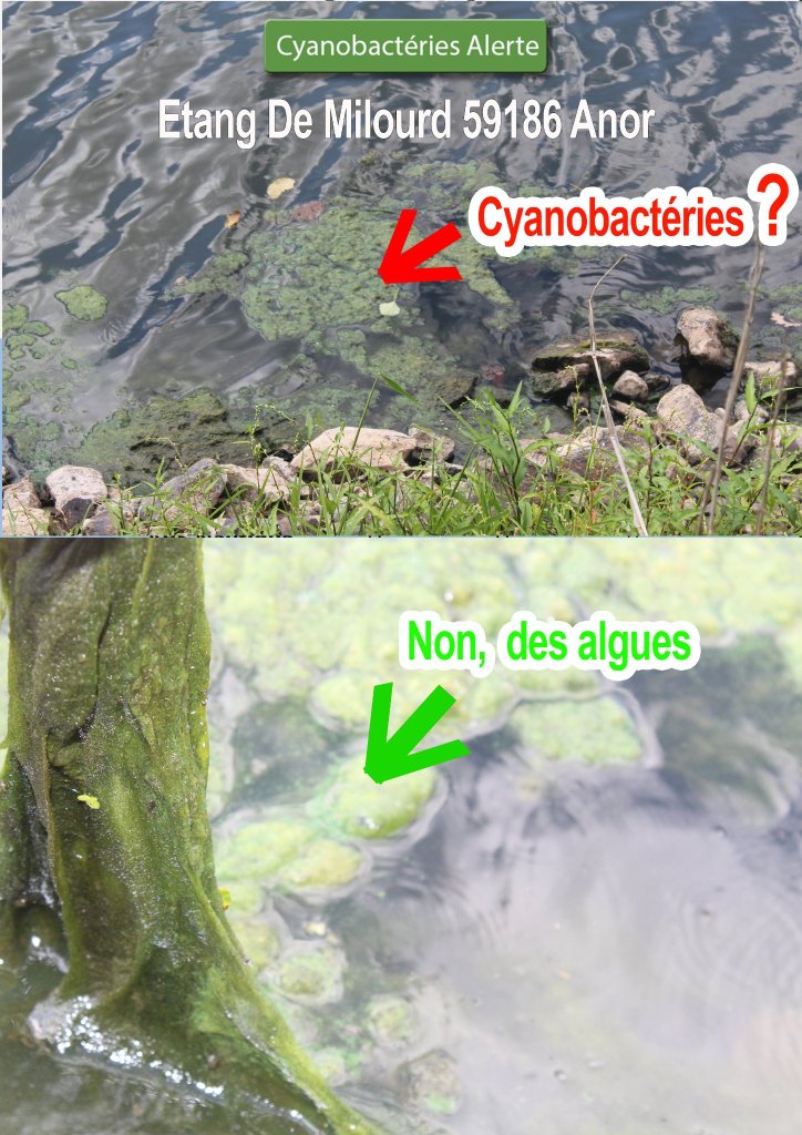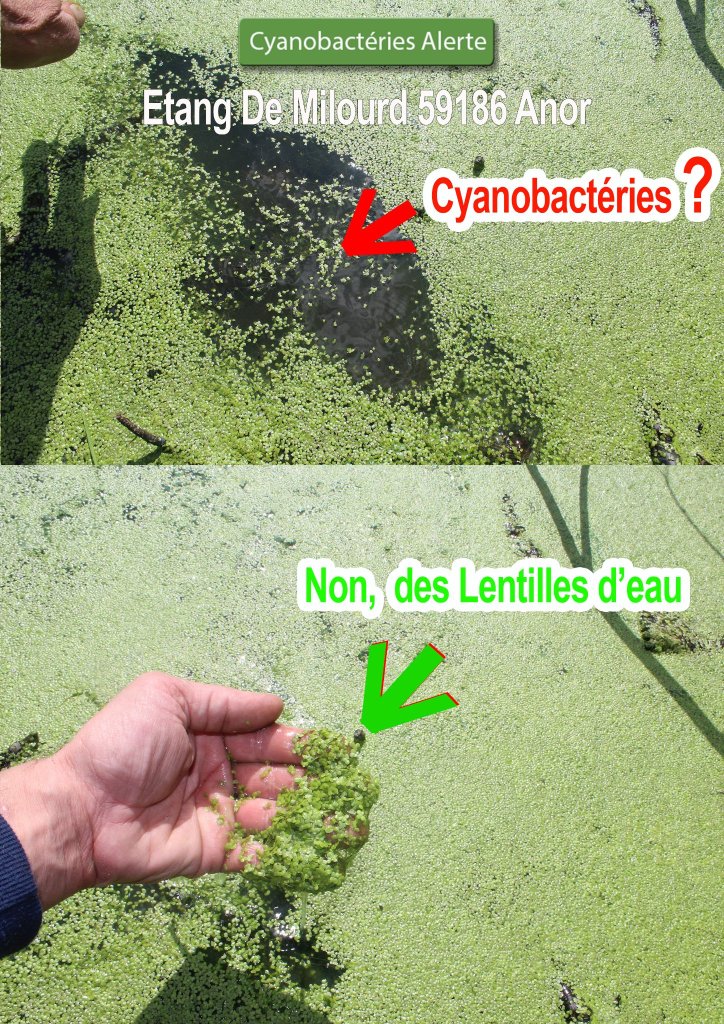 Cette publication du groupe Cyanobacteries alerte vous montre la différence entre lentilles d’eau, algues et cyanonactéries.