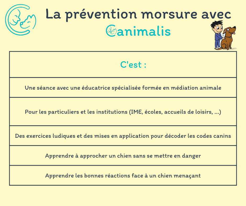 La morsure est la 3e cause d’accident domestique chez l’enfant par méconnaissance des besoins et signaux de communication du chien. Les enfants comprennent difficilement le langage canin, c’est pourquoi il est nécessaire de le leur expliquer et de leur enseigner le comportement à tenir.